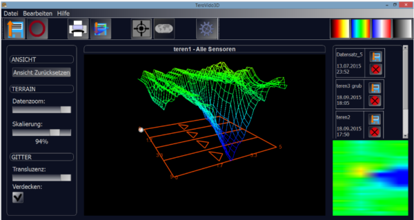 50厘米傳感器可以使用藍(lán)牙連接到隨附的平板電腦。如果您使用50厘米傳感器,您可以將平板電腦放在探測(cè)器桿的平板電腦支架上。在掃描場(chǎng)時(shí),您會(huì)看到掃描結(jié)果會(huì)在顯示屏上顯示。軟件非常人性化且易于使用。