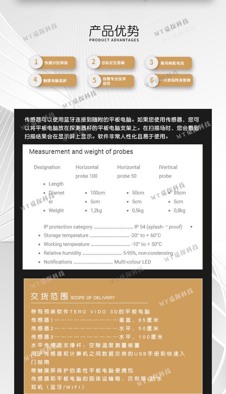 配置: 50+85+100厘米探棒